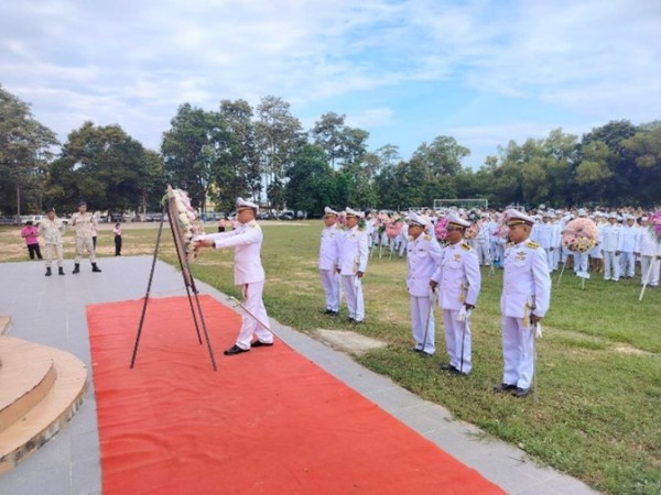 วันที่ 23 ตุลาคม 2567 เวลา 08.00 น. พ.ต.ท.อดิศักดิ์ ทองหลาง สว.สภ.หนองแวงควง นำข้าราชการตำรวจในสังกัด ร่วมพิธีวางพวงมาลาถวายราชสักการะ น้อมรำลึกถึงพระมหากรุณาธิคุณ เนื่องในวันคล้ายวันสวรรคต พระบาทสมเด็จพระจุลจอมเกล้าเจ้าอยู่หัว ร่วมกับส่วนราชการประชาชนในอำเภอศรีเด็จ ณ ลานหน้าพระบรมรูปฯที่ว่าการอำเภอศรีสมเด็จ