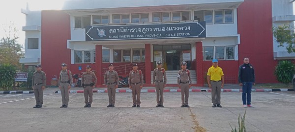วันที่ 1-30 พฤศจิกายน 2567 เวลา 08.00 น. พ.ต.ท.อดิศักดิ์ ทองหลาง สว.สภ.หนองแวงควง และร้อยเวร20สายตรวจในแต่ละวัน เรียกรวมแถวหน้าเสาธง เพื่อเคารพธงชาติ สวดมนต์ไหว้พระ กล่าวอุดมคติตํารวจ และชี้แจงข้อราชการต่างๆก่อนออกปฏิบัติหน้าที่ ดังนี้