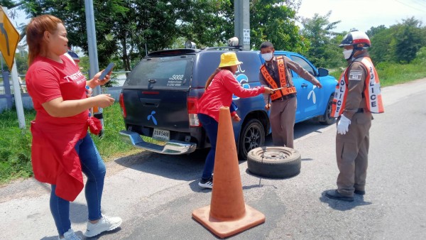 วันที่ 20 พ.ค. 2567 จราจร สภ.หนองแวงควง ให้การช่วยเหลือผู้เดินทางในการเปลี่ยนยางรถยนต์